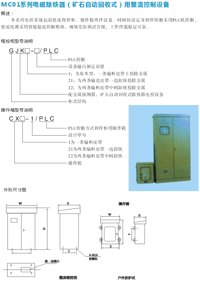 MC01系列電磁除鐵器(礦石自動(dòng)回收式)用整流控制設(shè)備